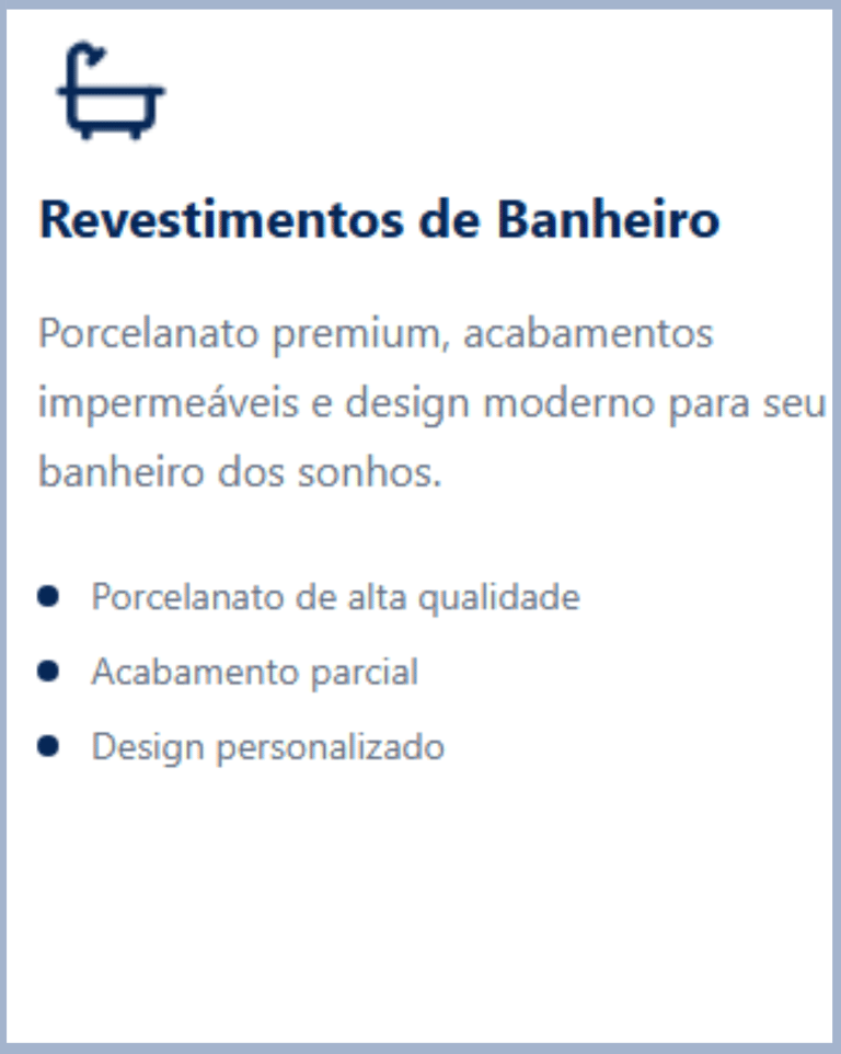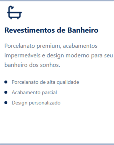 Oferecemos soluções completas em revestimentos e acabamentos, sempre com materiais de primeira qualidade e mão de obra especializada.